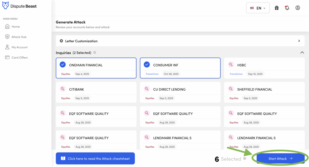 Every 40 days, you’ll repeat this easy process to send attacks to credit bureaus, secondary bureaus, and data furnishers. If there’s anything negative on your credit report, Dispute Beast can attack it. This includes late payments, charge-offs, collections, student loans, foreclosures, repossessions, bankruptcies, inquiries—if it’s on your credit report, you can attack it. With just one button, Dispute Beast, the go-to DIY credit repair software, does all the hard work for you.